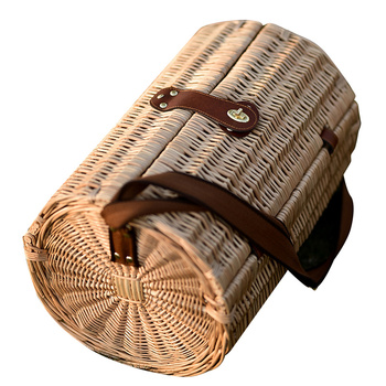 Toptan lüks 4 kişilik yuvarlak hasır piknik sepet seti çatal lüks saklama sepetleri