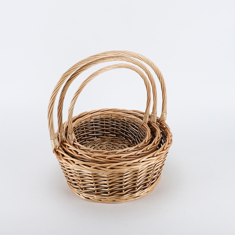 Ucuz boş hasır meyve hediye kollu sepet özelleştirilmiş söğüt Rattan depolama sepeti
